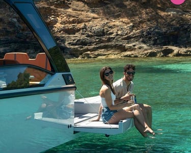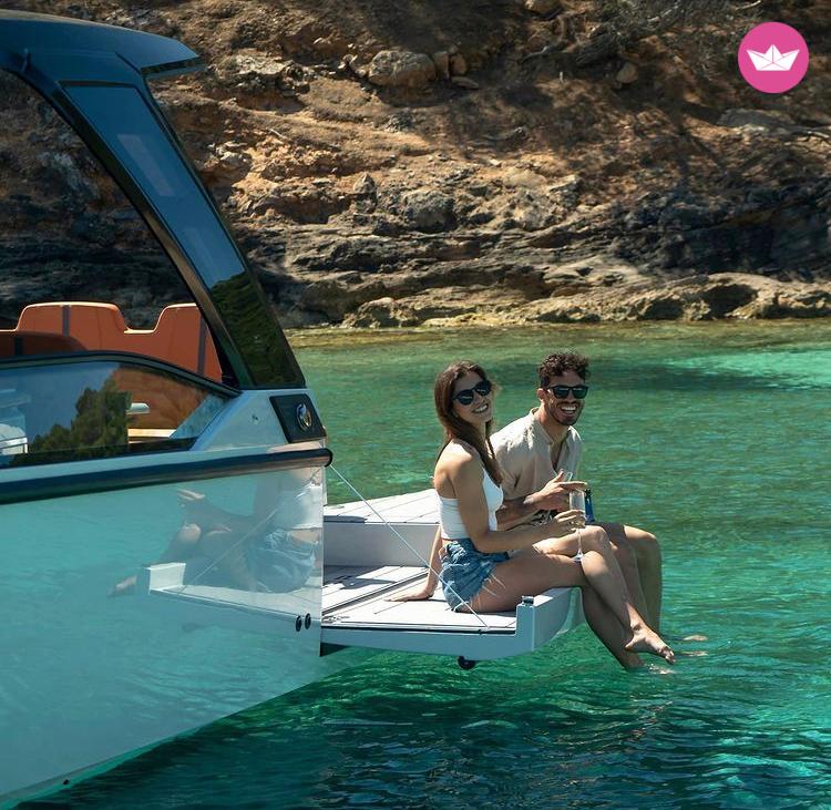 Share a unique motor boat charter in Agios Nikolaos.